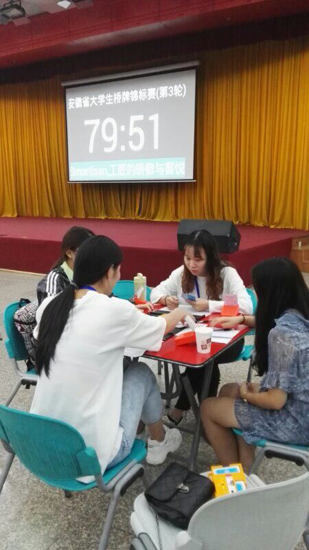 9月16日,由安徽省教育厅主办,合肥工业大学承办,安徽省桥牌协会协办的安徽省首届老员工桥牌锦标赛在合肥工业大学落下帷幕。共有来自省内6所高校14支队伍60余名运动员参加了本次比赛。竞赛项目包含公开团体赛、女子团体赛、公开双人赛、女子双人赛。
