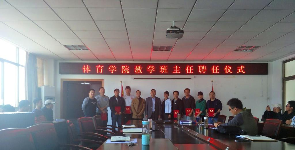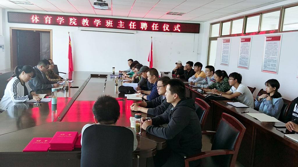 10月24日中午,谈球吧在体育馆会议室举行首届技能教学班主任聘任仪式。经理章翔、副经理林秋菊、党委副书记高栋梁、教学办公室相关老师、技能教学班主任、2018级新生班辅导员以及2018级新生代表参加了仪式。