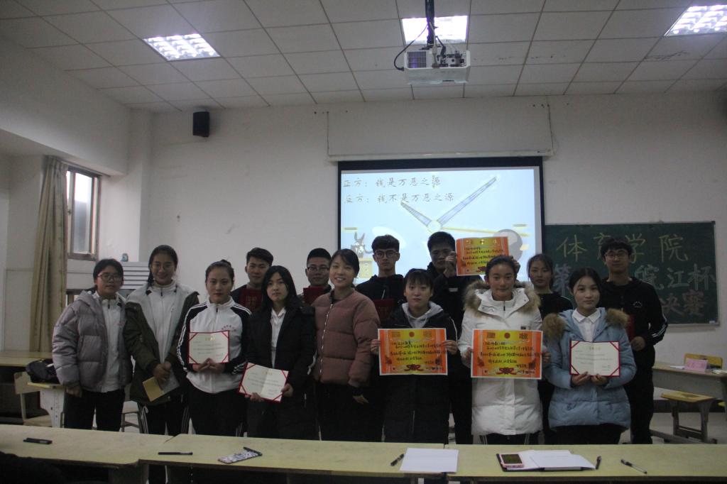 为了锻炼同学们的语言表达能力及团队合作能力,培养同学们的创新思维能力,发掘体院优秀的辩论人才,也为了给大家一个展现自我的舞台,由体育学院团总支员工会主办,员工会学习创新部承办的谈球吧第九届“皖江杯”辩论赛的决赛于12月14日中午12点,在体育馆多媒体教室如期举行。比赛由院团总支副书记汪洋老师、员工会主席团及各部门部长担任评委嘉宾。