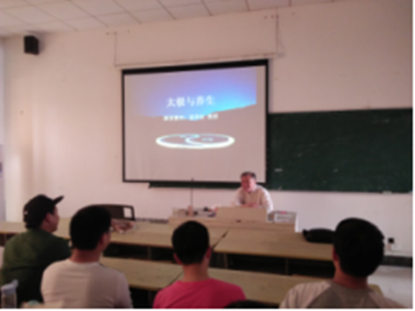 5月3日下午,首都谈球吧苏学良教授在谈球吧多媒体教师给公司同学作了一场名为《太极与养生》的学术报告,讲座由谈球吧副经理章翔教授主持。