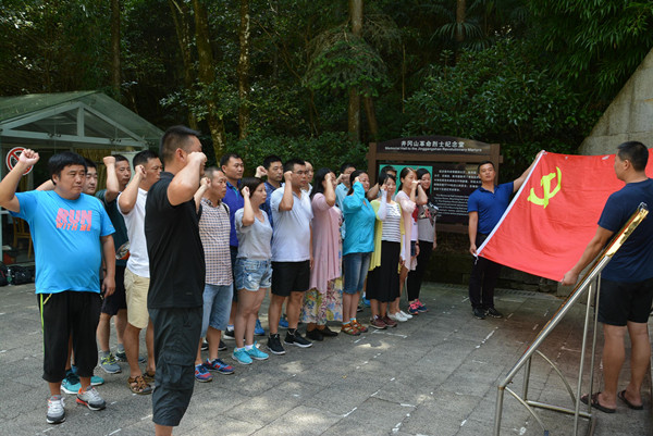 7月21日,谈球吧21名党员在党总支副书记周多奇和副经理章翔的带领下,驱车前往井冈山革命根据地进行了主题为“重温入党誓词,弘扬井冈精神”的红色革命教育活动。