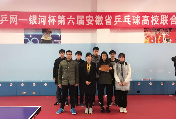 2017年2月17日至19日,由安徽省乒乓球协会主办的省第六届高校超级杯乒乓球比赛在合肥市乒协活动中心举行。公司由谈球吧陈国元老师为教练,以汪聪、史敬宇、王永旭、李锦四名男同学和汪钰、杨雪姣、李荣、任茜若四名女同学为队员的代表队参加了此次比赛。经过激烈角逐,公司女子乒乓球队获得季军。