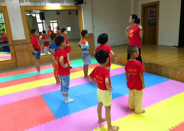 酷热三伏天,学员们仍然提前到达了活动地点,早早地就在垫子上做准备工作。教练性格也雷厉风行,上场后随即带领学员们进行热身锻炼。在课堂上,教练给学员们讲述武术的含义,制定武术兴趣班的课堂纪律,教授武术的基本动作。学员们的积极配合,教练们的悉心幽默的指导使整堂课在幽默轻松的气氛下进行。