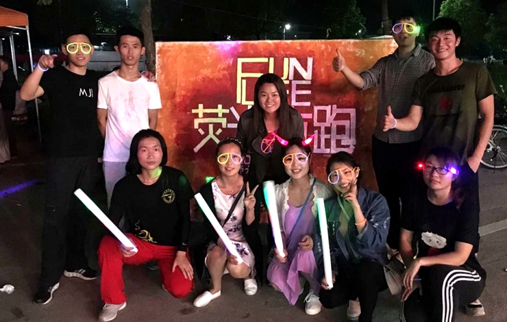 64日晚,员工第二党支部在支部书记胡哲纯老师的带领下,联合老员工源动力阳光跑族,在龙山校区开展了以“两学一做见行动为主题的“荧光夜跑”活动。借此引导老员工从长时间的观看手机、看电脑等不健康的生活方式中挣脱出来,积极参加体育锻炼,养成想运动、爱运动的良好习惯;同时帮助老员工改变体育健身的传统观念,丰富健身手段与内容,从而养成终身体育的意识。当晚,共有来自全校14个公司的近800余名同学一起参加了此次活动,庞大的荧光队伍奔跑在校园中,既是一道亮丽的风景,更多地体现出一种校园文化精神动力。