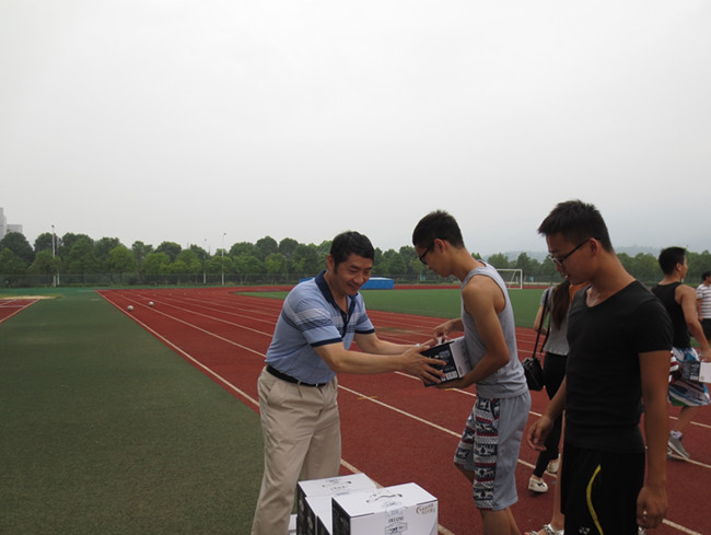 谈球吧副经理、校体艺委常务副主任章翔陪同看望。(汪云星)