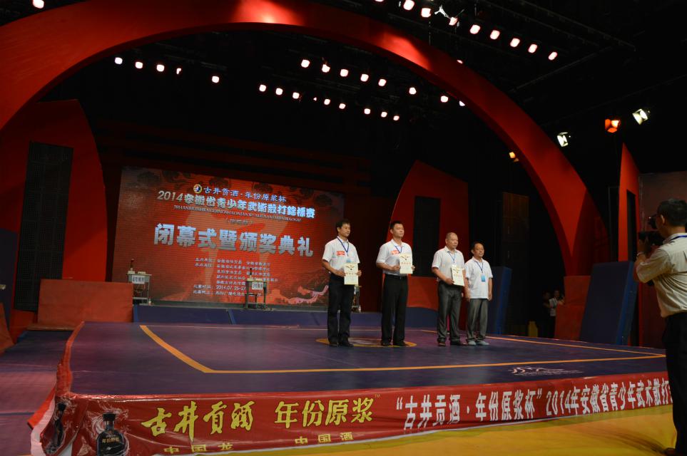 2014年7月25日至27日,由安徽省体育局和安徽省教育厅主办,安徽省武术拳击运动管理中心和阜阳市体育局承办的“古井贡酒·年份原浆杯”2014年安徽省青少年武术散打锦标赛在阜阳市隆重举行,公司的王思乐老师不但应邀担任了本次大赛的裁判员,而且还凭着精湛的业务能力被大赛组委会评为“优秀裁判员”