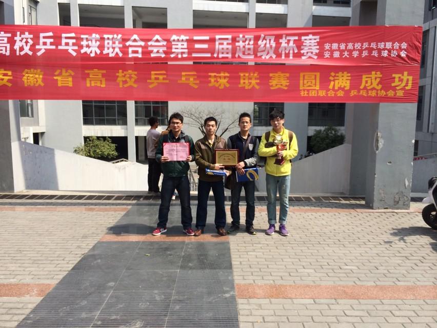 2014年3月22日至23日,由安徽省乒乓球协会主办的安徽省高校乒乓球联合会第三届超级杯乒乓球赛在安徽大学隆重举行。以谈球吧的陈国元、黄安泉两位老师为教练,以姜杭、沈涛、江南、孙帝为队员组成的公司男子乒乓球队,经过激烈的角逐,最终获得团体亚军,为公司争得了荣誉。
