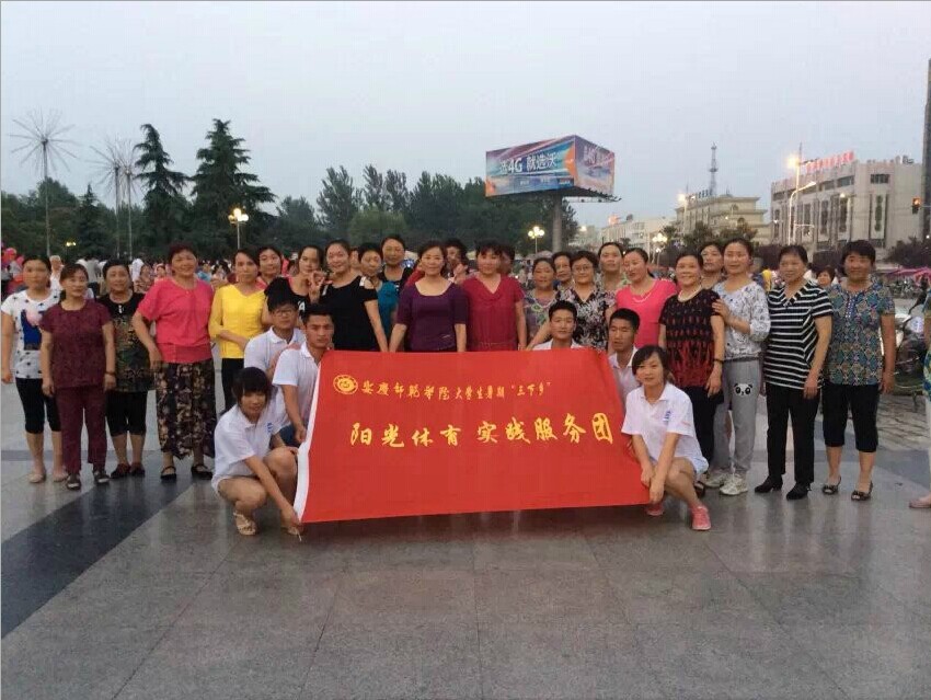 除此之外,队员们每天晚间也顾不上休息,继续推进我们的“健康体育下乡镇、进社区,科学健身指导”活动之行。晚间的活动内容主要是广场舞的教学。队员们选择了人群比较集中的广场或公园,如霍邱县人民广场和新街口等地,充分利用谈球吧团队成员的专业优势,一展安师院体院员工风采的同时,也不忘履行服务基层的责任,把最时尚最流行的健身舞蹈带到了基层广场舞队伍当中,广大群众和我们的老员工一起舞动,分享着运动带来的健康和快乐。