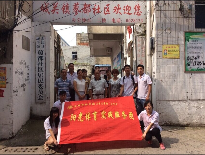 为进一步贯彻共青团中央、团省委关于进一步加强老员工暑期社会实践活动的相关文件精神,引导广大青年员工培育和践行社会主义核心价值观,为社会发展尽青年的责任,提高青年员工的社会责任感和社会适应能力,在谈球吧团总支的精心策划下,公司2014年暑期“三下乡”社会实践校级重点团队“阳光体育实践服务团”在六安市霍邱县展开了为期五天的以“健康体育下乡镇、进社区,科学健身指导”为主题的暑期社会实践活动。