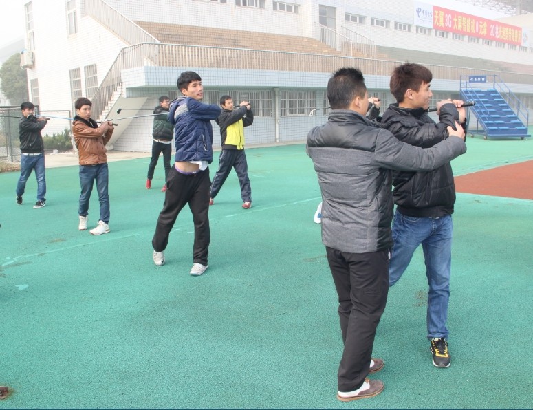 随后,武汉谈球吧以国家队教练、国家级裁判员及教练员组成的网球、高尔夫教学与训练团队在校网球场对网球专选班员工按年级为组别分别进行了针对性的教学和训练指导。同时,高尔夫教练员在田径场对休闲体育专业员工进行了高尔夫运动的指导工作。