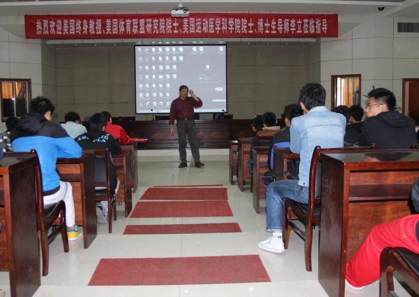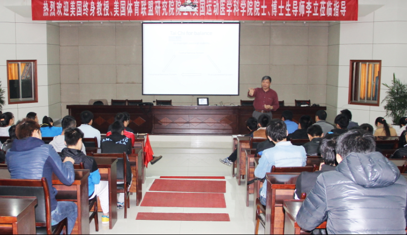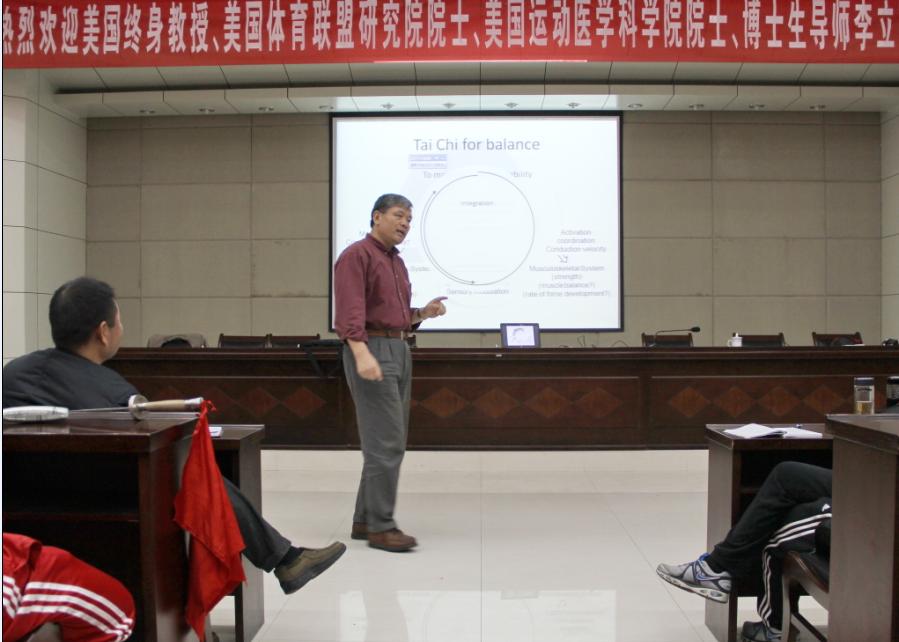 11月21日下午,美国佐治亚南方大学李立教授在行政楼一楼会议室做了题为“太极拳为什么能够改善老年人的平衡能力”的学术报告。谈球吧一百多位师生聆听了报告。