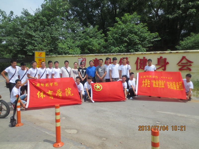 本次社会实践活动从7月4日至15日,历时12天。在这十二天里,16名同学分成两组,分别下派到豪仕堡健身会所的市场部和教练部接受培训并实践。通过此次社会实践活动,不仅可以检验同学们的专业知识,丰富同学们的健身技能,加深同学们对创业流程的了解;更重要的是,还能提高团队成员的协同创新能力和团结协作能力,为中国梦、青春梦的实现奠定基础。