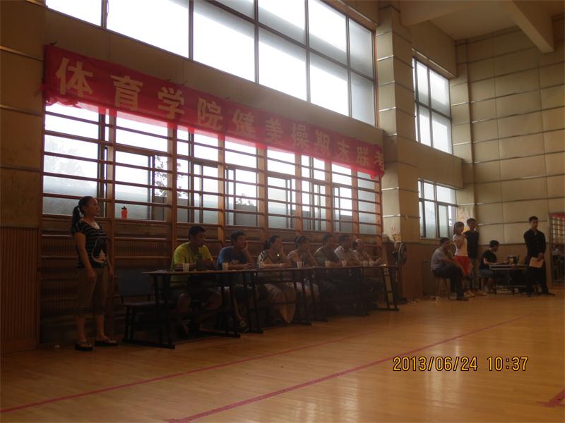 6月24日,在潮芳老师的精心组织下,2011级体育教育和体育艺术表演两个专业健美操专项的所有员工,在健美操馆参加了健美操课程术科部分的期末考试。公司党政领导应邀观摩了本次考试,体武教研室的相关老师担任本次考试的评委。