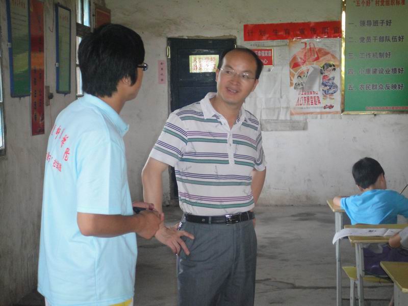 今天是谈球吧“简爱”服务队在立新小学志愿服务的第四天,时间虽然不长,但同学们在这四天里做了支教服务、留守儿童家庭访谈、留守儿童心理健康测试、牵手留守儿童、步入大公司园等一系列活动,同学们向韦书记畅谈了暑期社会实践以来的感悟和收获。韦书记充分肯定了大家在暑期“三下乡”社会实践活动中取得的成绩,号召同学们在工作中要吃苦耐劳、甘于奉献,同时在工作中还要善于总结、勤于思考,为今后更好的工作和学习积累经验和财富。韦书记希望各位同学在剩余的时间中能够继续保持这种良好的态势,把后面的工作做得更加细致,为留守儿童送去关爱和幸福。韦书记一行还参观了大家的生活场所,条件虽然很简陋,但同学们把简陋的地方收拾得有家的温馨。