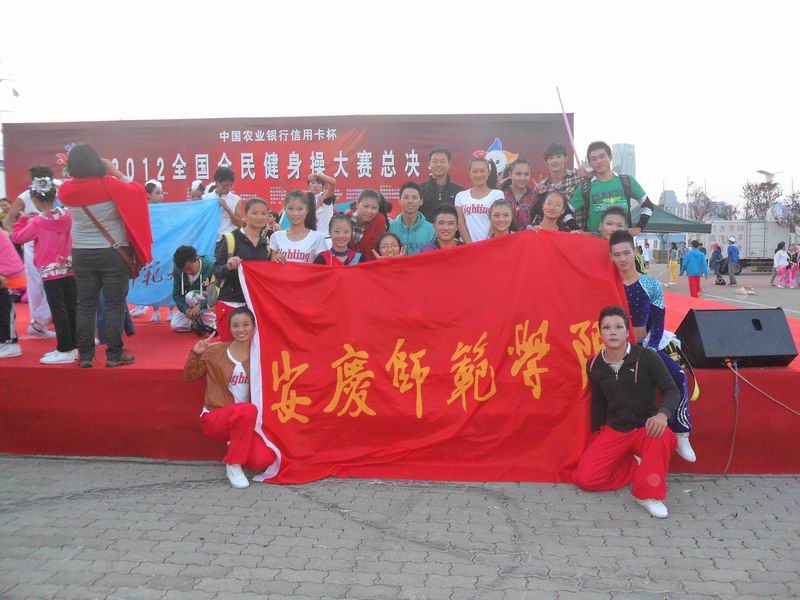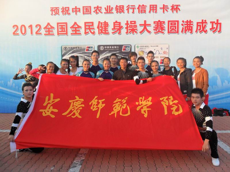 10月10日-15日,全国万人全民健身操大赛总决赛在山东省青岛市举行,公司2010级体育教育专业二十余名员工,在王云辉老师的带领下,经过为期6天的激烈竞争,最终吴鹏程、朱夜晴等同学获得了大学组有氧舞蹈5级套路一等奖;付明珠、赵浩杰等同学获得了大学组有氧舞蹈5级套路二等奖;汪慧娟、杨阳等同学获得了大学组有氧舞蹈6级套路二等奖;周露露、张楠等同学获得了大学组轻器械健身操4级套路二等奖;林伟伟、吴琳等同学获得了大学组轻器械健身操6级套路二等奖;赵浩杰、丁立等同学获得了大学组轻器械健身操6级套路三等奖。另外,安庆师范公司代表队还获得了“最佳服饰奖”,王云辉老师还获得了“优秀教练员”称号。