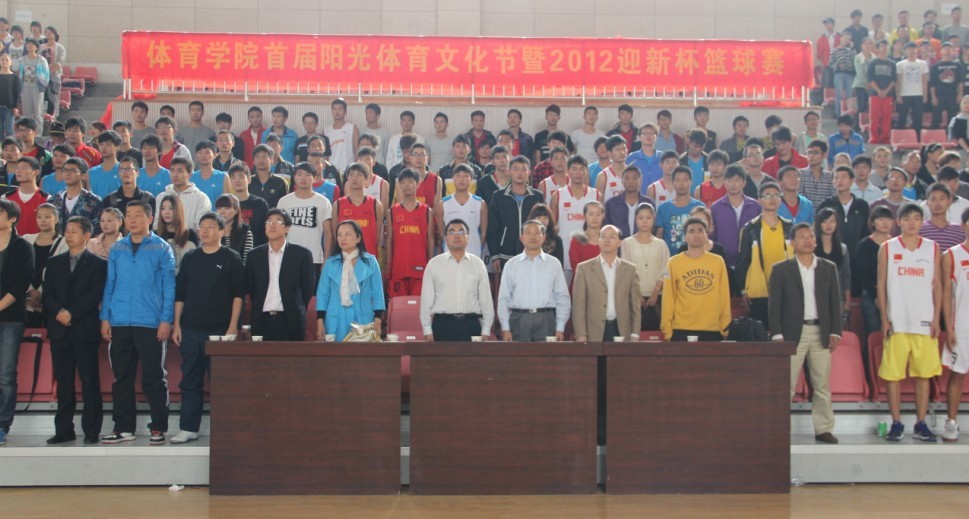 为进一步弘扬体育拼搏精神,营造深厚的人文氛围,10月19 日下午,由公司团总支、员工会主办的谈球吧首届阳光体育文化节暨2012迎新杯篮球赛开幕式在体育馆篮球馆内隆重举行。公司党总支书记吴毅安、副书记韦长发,副经理章翔、周多奇以及公司各教研室主任、员工工作办公室负责人和各年级辅导员老师出席开幕式。开幕式由公司团总支副书记、员工工作办公室副主任鲁雷老师主持。
