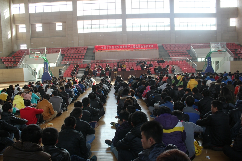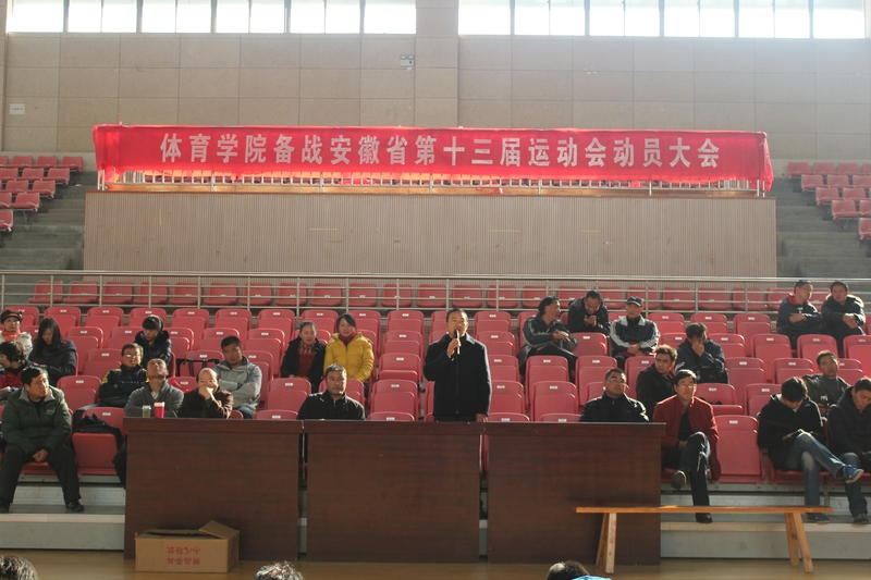 12月5日下午,谈球吧在体育馆隆重举行备战安徽省第十三届运动会动员大会。谈球吧全体党政领导出席了大会,谈球吧全体教师和2011级、2012级全体同学参加了大会。动员大会由副经理章翔主持。
