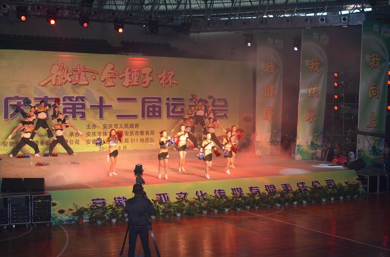 9月15日上午,安庆市第十二届运动会在市体育馆隆重开幕。公司2009级健美操专选班二十余位同学在潮芳老师的带领下,参加了本次运动会开幕式文艺演出。公司员工精湛的表演水平赢得了现场观众一阵阵热烈的掌声。