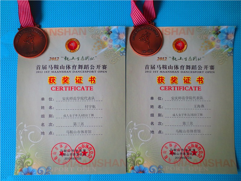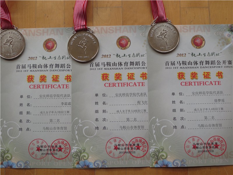 6月2日,安徽省第一届“甄山杯”体育舞蹈公开赛在马鞍山市体育馆隆重举行。公司体育表演专业员工在潘磊老师的带领下,经过精心准备和顽强拼搏,在本次比赛中获得了优异成绩。其中,公司体育表演专业2011级的李霜霜、徐梦瑶和付宇航同学分别获得了成人女子单人A组拉丁舞第一名、第二名和第三名;体育表演专业2011级的徐梦瑶和程飞红同学分别获得了成人女子单人B组拉丁舞第一名和第二名;体育表演专业2011级的付宇航、李霜霜和2009级的王海燕同学分别获得了成人女子单人C组拉丁舞第一名、第二名和第三名。