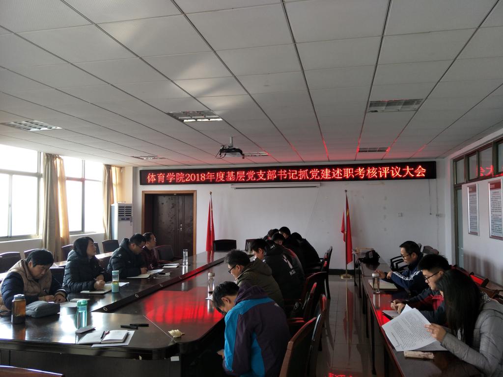 会上,各基层党支部书记认真对照上级精神、紧密党建工作实际,就在2018年度推动党建工作取得的成绩和存在的问题分别进行了述职。理论球类教工党支部书记孙明运老师认为:支部将重点打造公共体育课教学的党员先锋团队,同时充分发挥青年党员教师作用,实现科研立项突破等;田径武术教工党支部书记王晓东认为:党建工作要进一步与立德树人的培养任务紧密结合,各教师党员要将明确党员义务、认真履行党员职责,更加规范地做好公司的党建工作;体育教育专业员工党支部程启平认为:要不断加强对员工入党积极分子培养教育、注重保护他们在学习和工作上的积极性,同时要不断丰富“三会一课”内容,赋予主题,提升效果,以党建工作促进学业发展;体育表演专业员工党支部胡哲纯老师认为:要注重推进“两学一做”常态化制度化,进一步丰富学习内容和学习形式,各员工党员要带着感情去学,带着信仰去学,作为支部书记要注意发掘身边的优秀典型,提升学习效果;公司党委副书记兼党支部书记高栋梁老师代表休体专业员工党支部进行了述职。每位支部书记述职结束后,三位班子成员分别进行点评。述职结束后,公司考核组对各党支部工作、党支部书记述职情况进行评议测评。