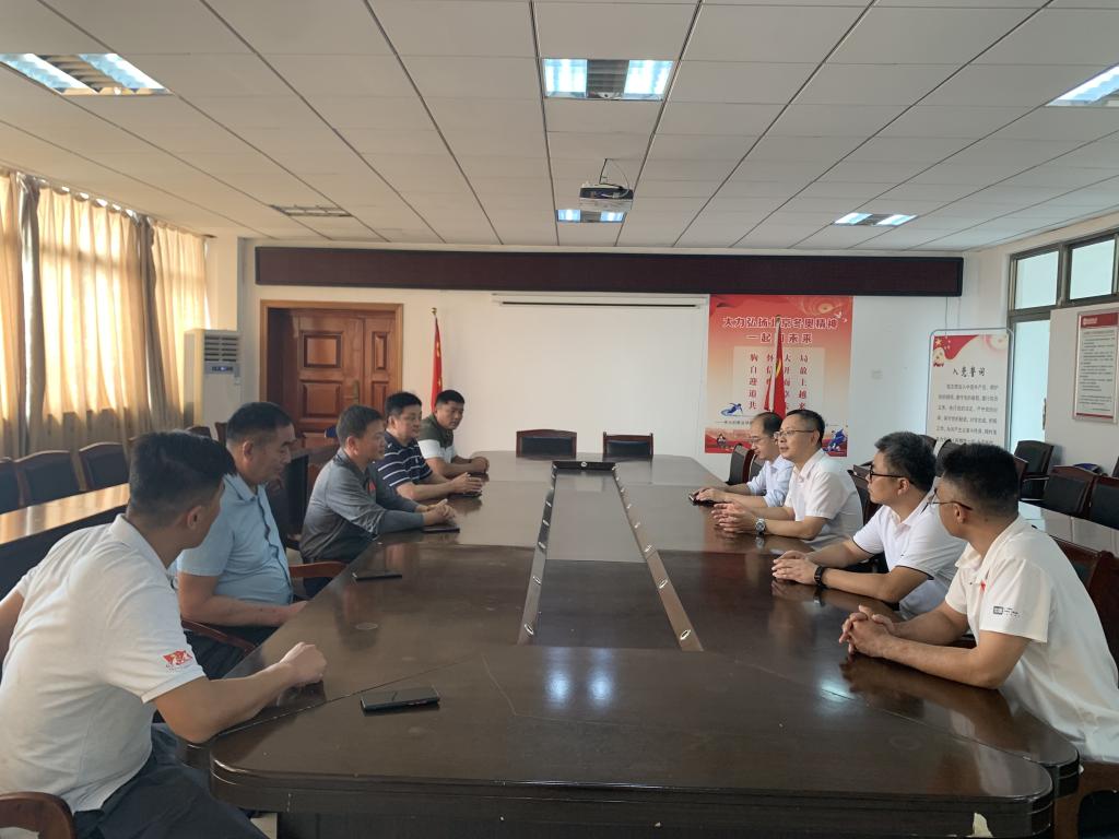 2022年9月29日上午,安徽省水上运动中心主任张树林率队来到谈球吧开展水上项目调研工作。公司党委书记徐晓宁、副书记王玮、副经理王晓东及武体教研室主任许贵泉参加调研。