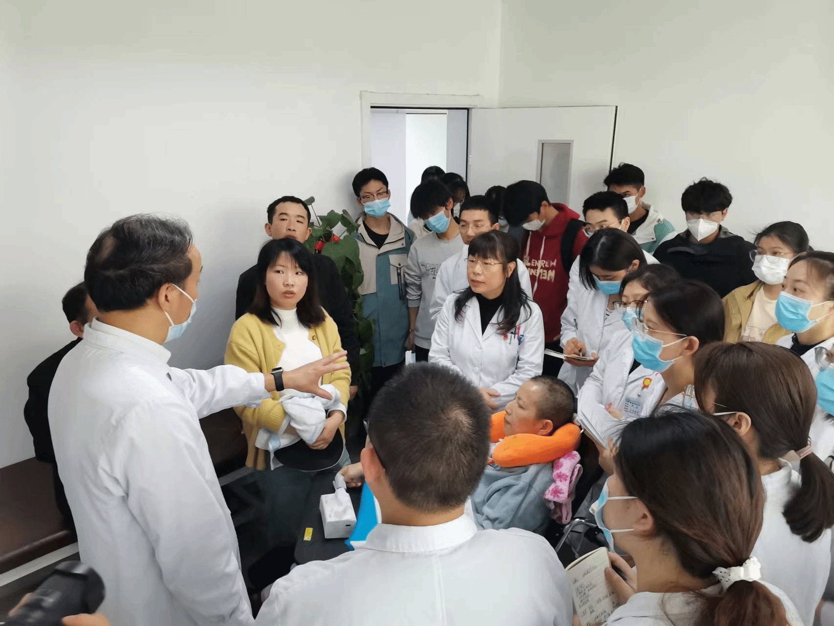 讲座结束后,员工们在老师带领下,深入到医院病房,经历第一次查房。在观摩医生、老师与患者的交流中,员工们深受感动和启发,纷纷表示,深深体会到了作为一名医务工作者所承担的责任。通过聆听报告和现场走访,员工们更加认识到所学专业的学科定位、专业要求和应用前景,对于制定学习计划和生涯规划起到重要作用。