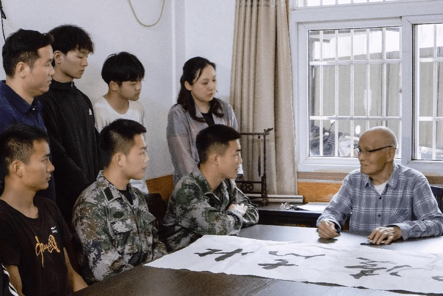 “希望你们都能有宏远的理想,并为之努力奋斗!”93岁的老兵柴瑞轩得知奚文杰等4名同学是刚复学不久的退伍老员工,高兴地铺纸蘸墨、提笔挥毫,创作了一幅题为“壮志凌云”的书法作品,送给同学们。