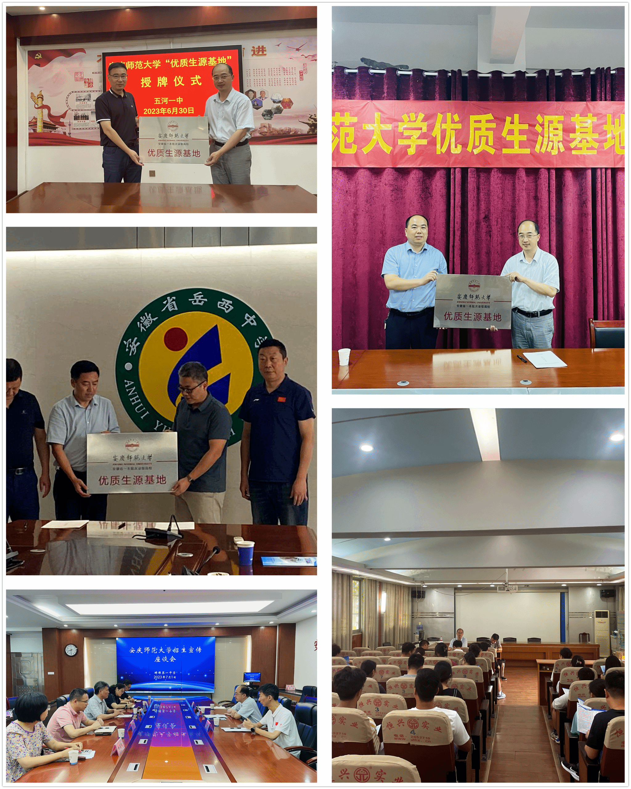 招生宣传组一行分别与五河第一中学、固镇县毛钽厂实验中学、安徽岳西中学签订优质生源基地的合作协议并授牌,回访了安徽省蚌埠第一中学。公司相关负责人分别向4所中学详细介绍了公司办学历史、办学条件、团队建设、专业特色、人才培养等基本情况,解读了今年的招生政策,尤其是介绍了谈球吧办学情况。4所中学相关负责人对公司办学水平和人才培养质量予以高度肯定,对公司招生政策和录取要求有了更深了解,并表示将会组织、动员符合条件的优质生源积极报考,到大学进一步深造发展。招生宣传组在五河第一中学召开了招生宣讲专场,耐心细致地向考生和家长们解答每一个问题,鼓励广大考生积极填报公司。